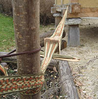 Brettchenweben können Frauen der Raetovarier allesamt. So entstehen wunderschöne Borten für die Gewänder. Gerne wird dieses alte Handwerk vorgeführt. |