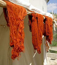 Wolle und Tuche färben mit Naturstoffen. Ob Krappwurzel, Färberwau oder andere Färberpflanzen... die Frauen der Raetovarier verwandeln die Wolle für die Gewandung in die schönsten Farben. | ![]() |